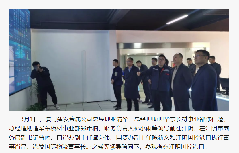 建發(fā)金屬參訪考察江陰國控港口并達成合作意向