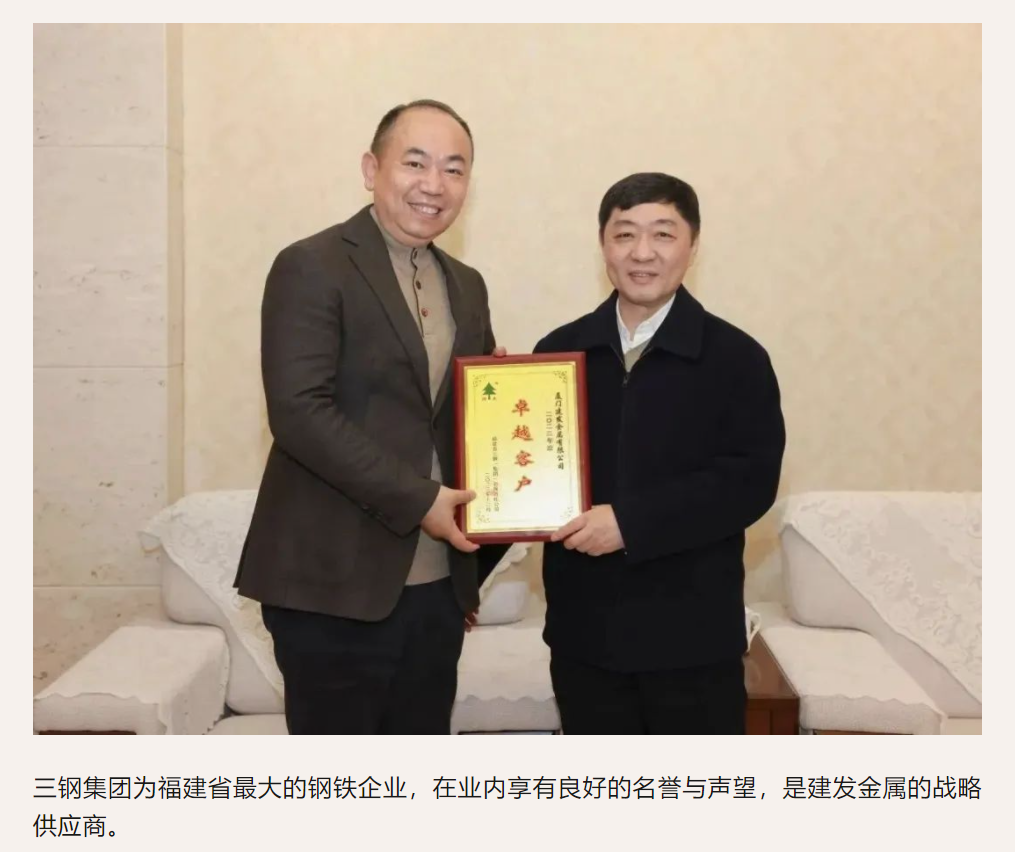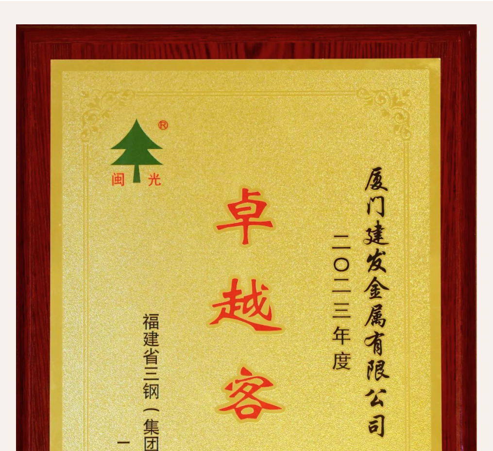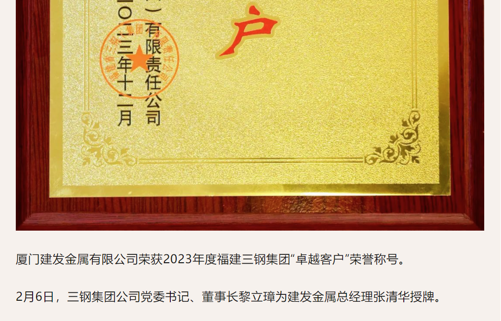建發(fā)金屬獲評2023年度三鋼集團“卓越客戶”榮譽稱號